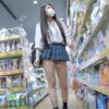 制服、黒プリーツミニ、見所はタイトミニのレースクィーン風コスプレ