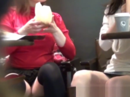 2組目はカフェでくつろぐミニスカお姉さんの2人組