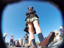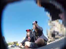 某テーマパークで無邪気に楽しむ茶髪JKをローアングルから盗撮♡