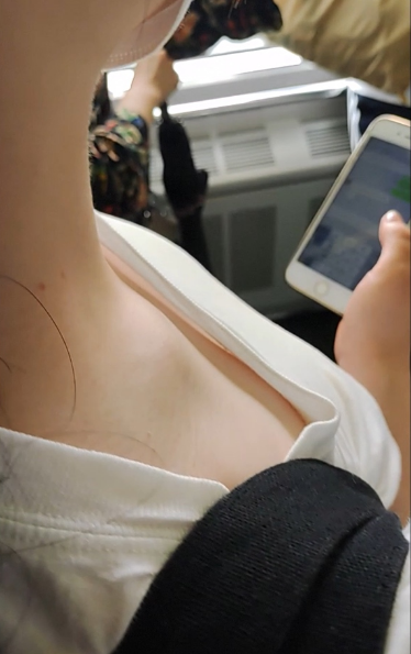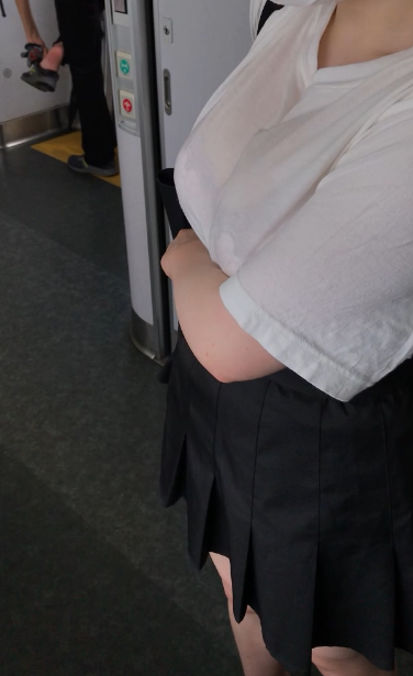 電車内で透け透け変態着衣の素人娘を激写動画です♡
